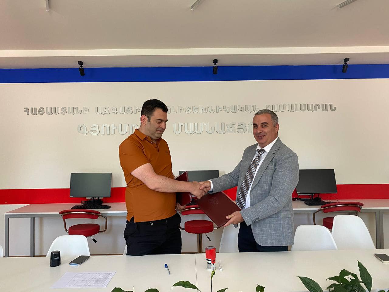 With the support of the RECONOMY program, within the framework of the Mini-Industry in T&A program, which will be implemented in the Gyumri branch of the PLA, a small textile and clothing production based on the idea of green industry, environmental conservation and ecology will be launched. According to the memorandum of cooperation signed by the founding Director of Zakaryan LLC, Hovik Zakaryan, the parties will jointly contribute to the development of the education system.